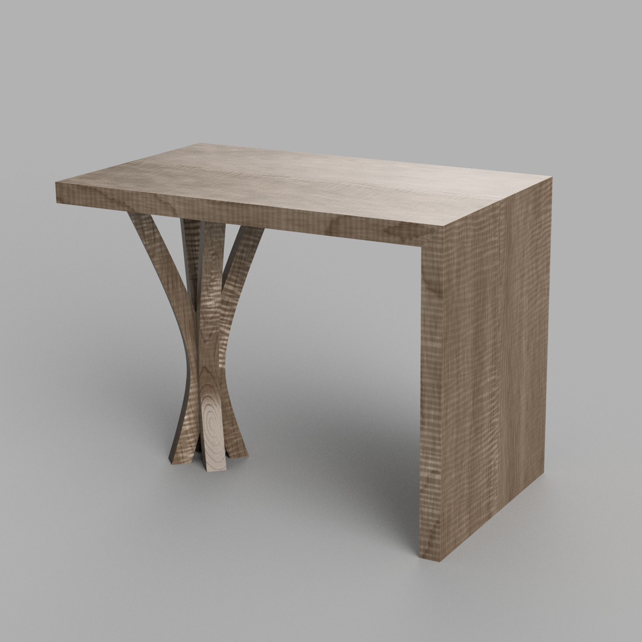 The design requirements began with a size specific measurement. The table was to be used as a small consultation table that could fit two people and a computer in a trusted setting. The light colored room featured a curved wall with accent colors of purple shades.